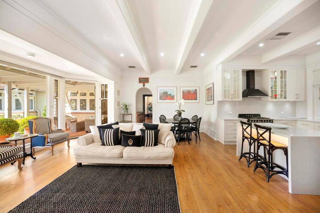 The layout of the house blends both formal and informal living, with formal living and dining rooms and an open-plan kitchen, living and dining area.