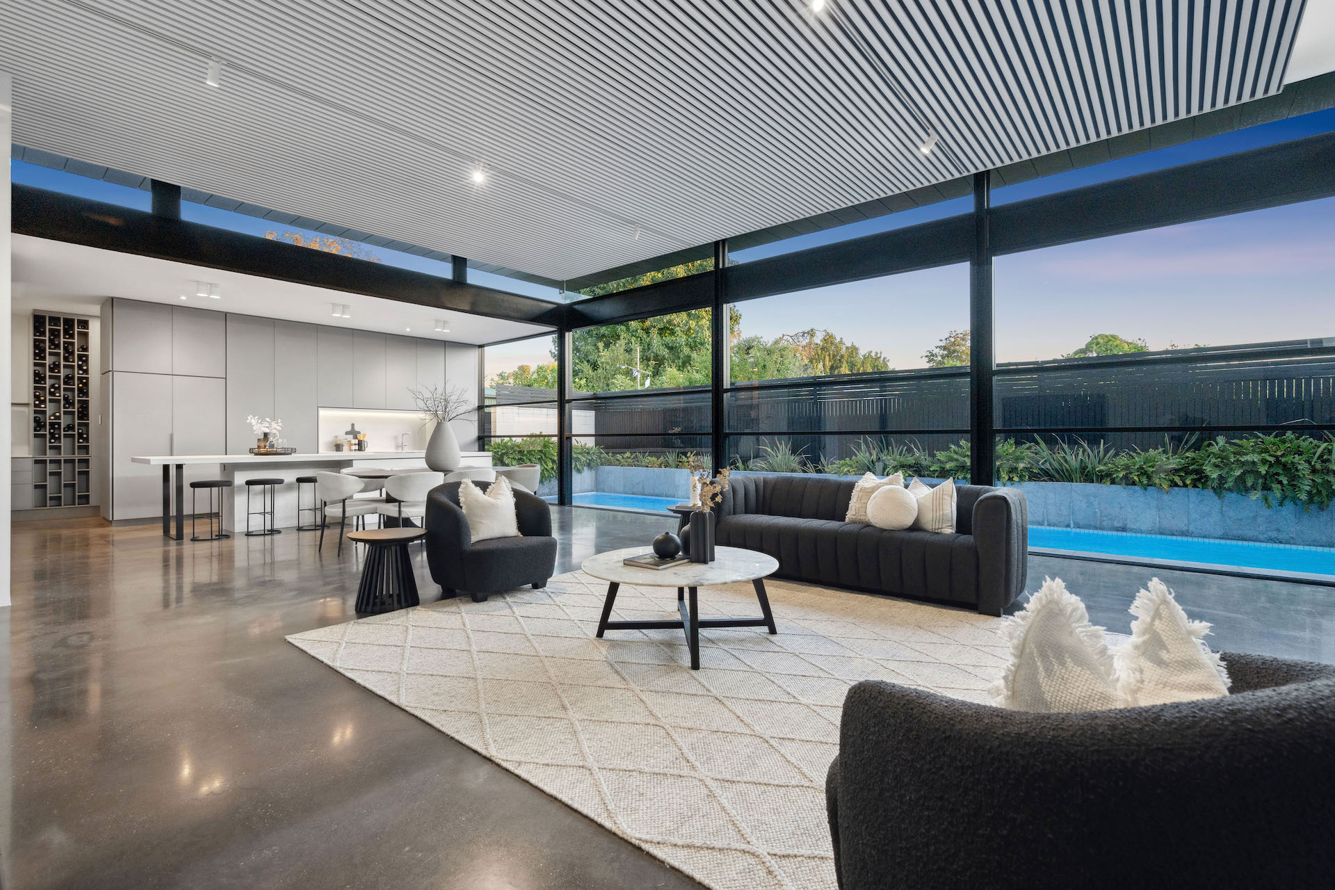 This area of the house looks out onto the outdoor entertaining area and lap pool.