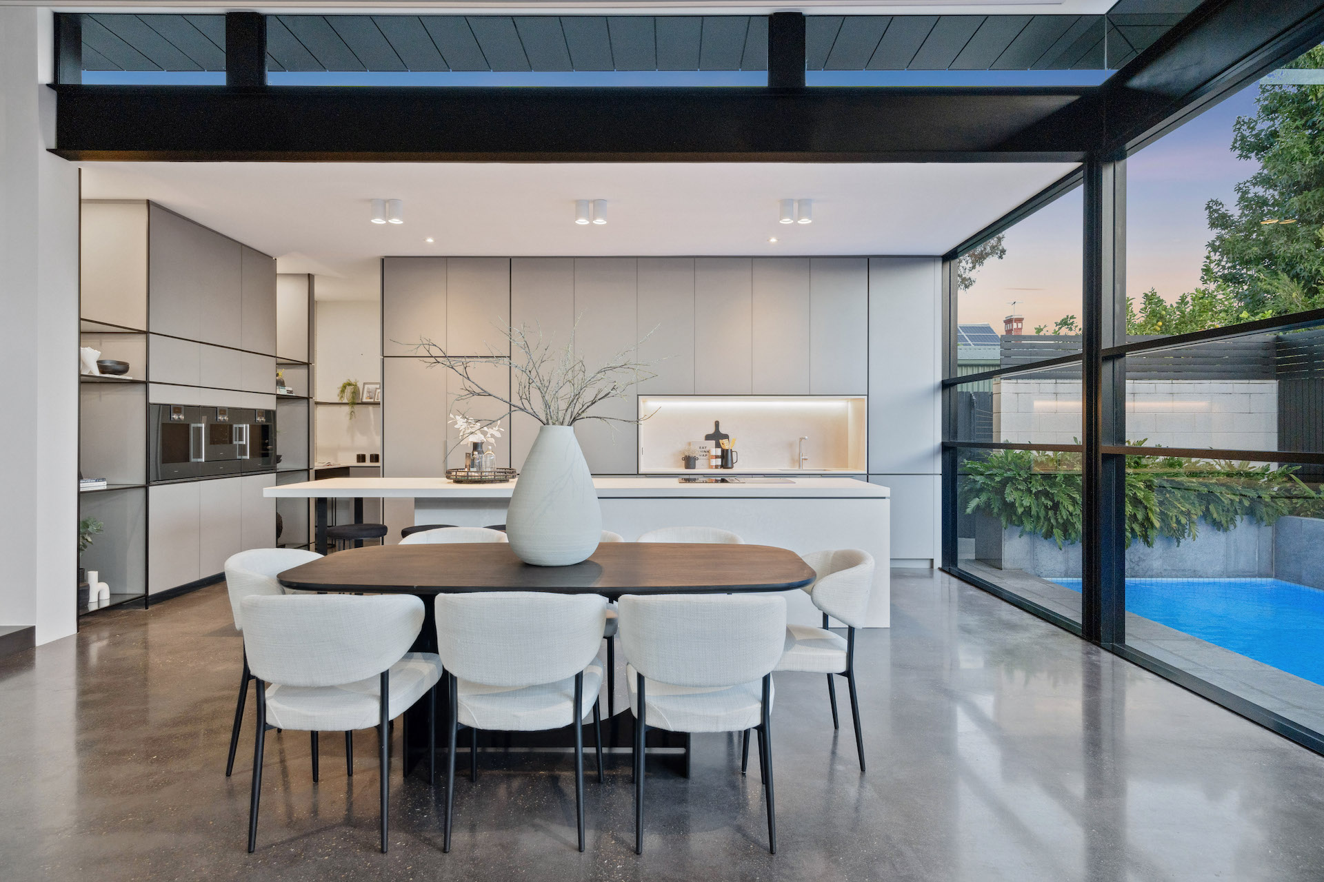 “The pool is 1.2 metres all the way with no deep end. It’s a very distinct, amazing, two-lane lap pool with visibility of the children and being able to juggle and integrate the pool with life because you’ve always got eyes on them basically,” says Anthony.