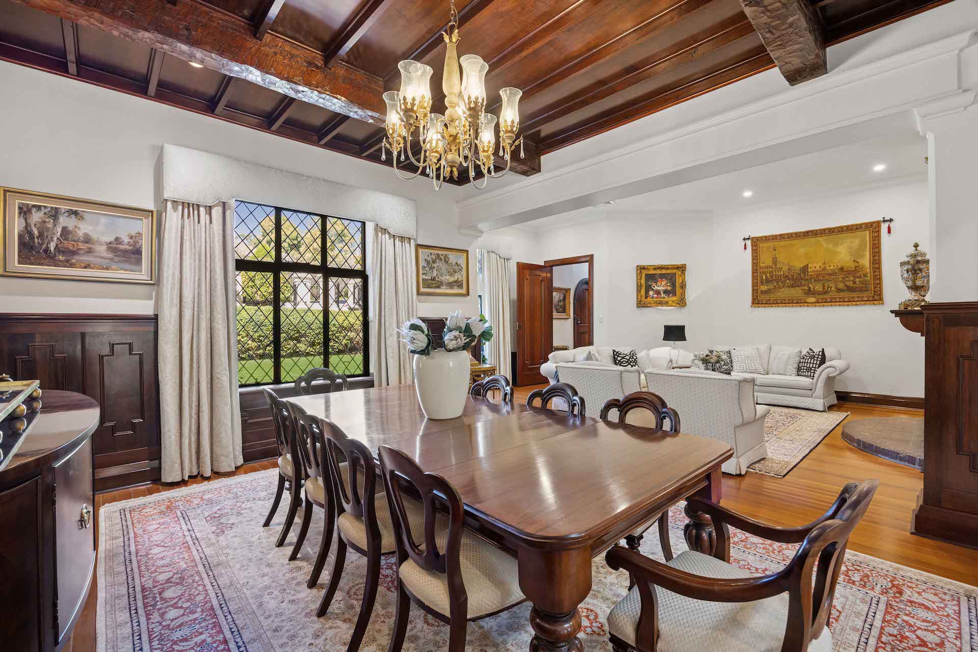 The home was built in 1927 in Tudor Revival style. Set on 2,400 square metres, the house seamlessly blends formal and informal living spaces. It features four bedrooms, three bathrooms and space for up to four cars.