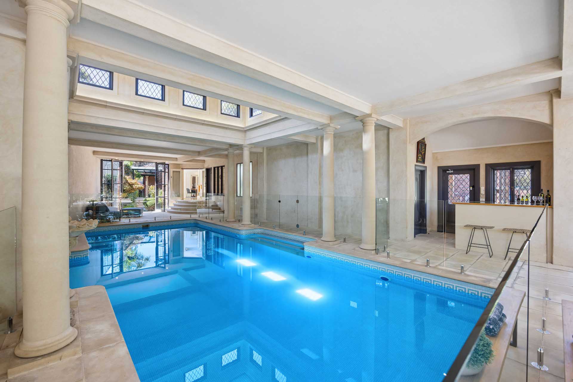 There’s a synthetic grass tennis court, a heated indoor swimming pool and a spacious wine cellar.