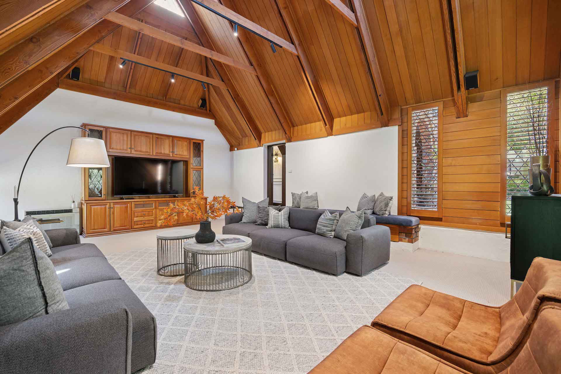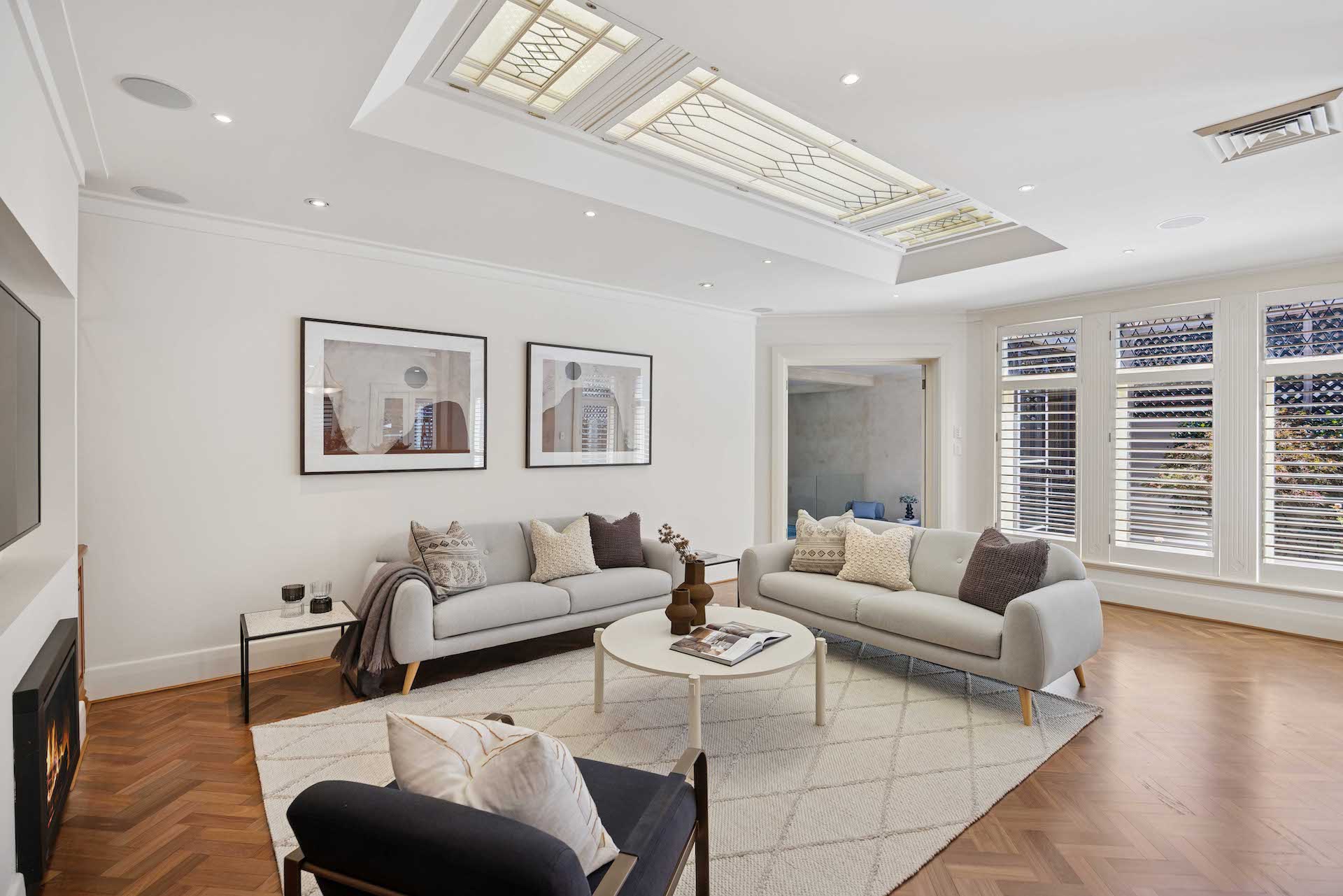The home was built in 1927 in Tudor Revival style. Set on 2,400 square metres, the house seamlessly blends formal and informal living spaces. It features four bedrooms, three bathrooms and space for up to four cars.