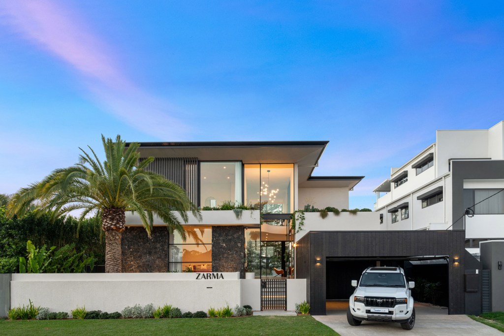 Step through the grand entry and you’ll feel it instantly – that sense of calm that comes from clever design and endless water views. The four-bedroom, four-bathroom home features expansive living areas and a seamless flow between indoors and out. Floor-to-ceiling glass fills the space with natural light, while Italian travertine and sleek, heated concrete floors lead you to a showstopping entertainer’s terrace. Fire up the built-in outdoor kitchen – complete with barbecue, sink, bar fridge and beer tap – or unwind beside the infinity-edge magnesium pool with twin shelf seats overlooking the canal.