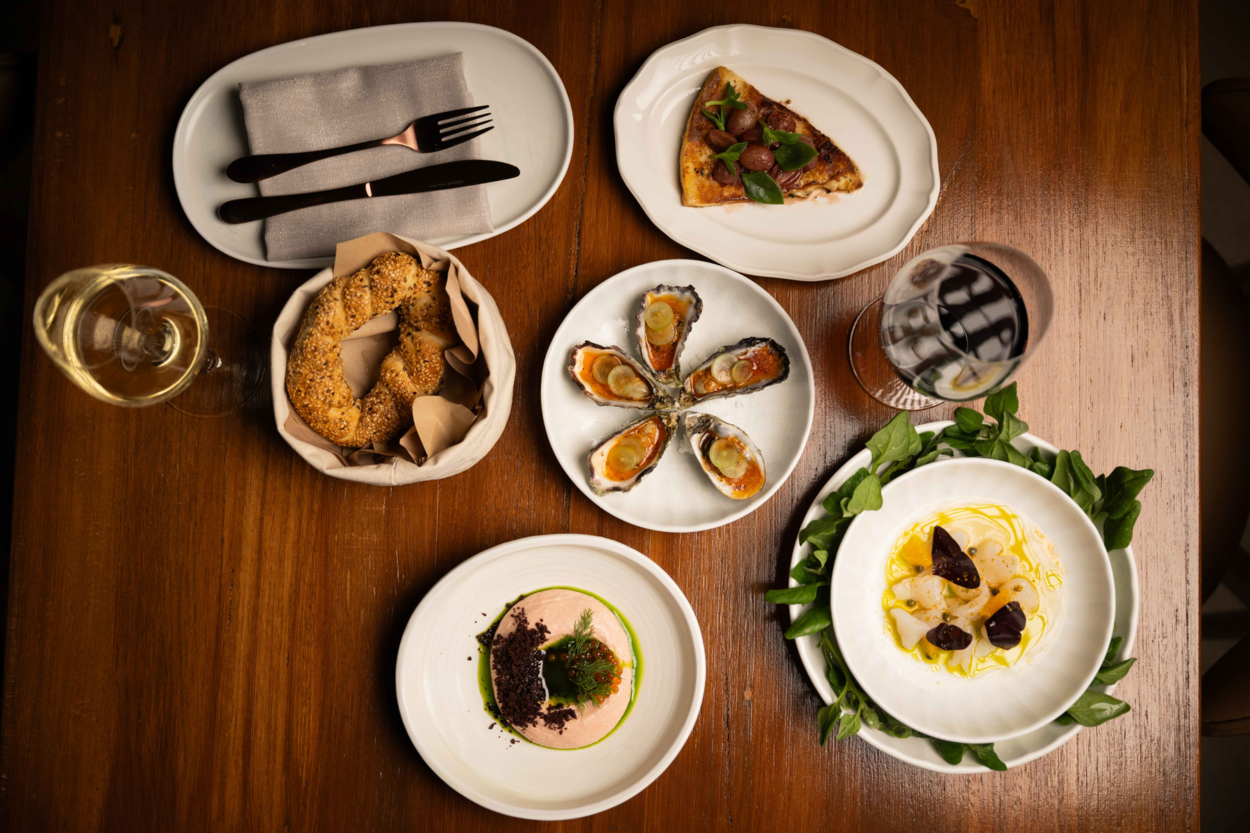 Designed by Space Cubed Design Studio, the venue has transformed the venue formerly occupied by Ti Amo site on Albert Street. The striking interior channels the venue’s namesake breeze through thoughtful, curved forms, from the layered roof and polished-concrete wraparound bar to arched cut-outs and flowing curtains. The main dining room features a striking mural of a coastal European town, while the bar glows with the reflection of a golden-hued copper mirror, designed to resemble a Mediterranean sunset. Outdoors, an expansive alfresco area offers a tranquil escape framed by an elevated olive tree and fragrant greenery including rosemary, citrus and guava.
