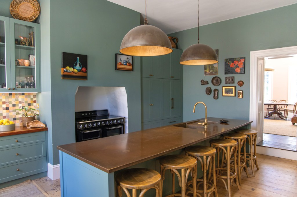 Stretching along the room is a copper island benchtop that has earned a patina – “It has spots and marks on it and it doesn’t matter,” Margaret says.