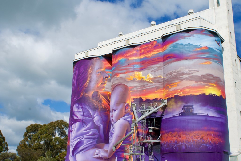 The two new towering silo murals in Lameroo, looking out across the Mallee, tell the story of a town built on agriculture and propelled forward by multiculturalism, scale and innovation.