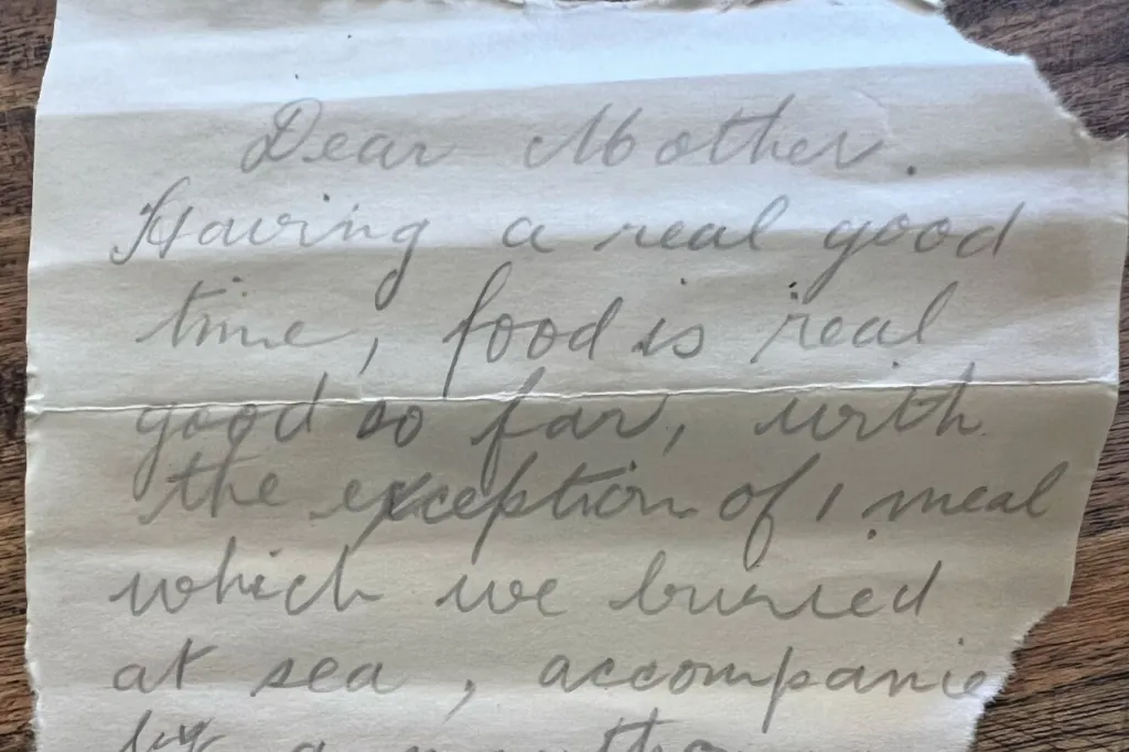 “Food is real good so far, with the exception of one meal, which we buried at sea.”